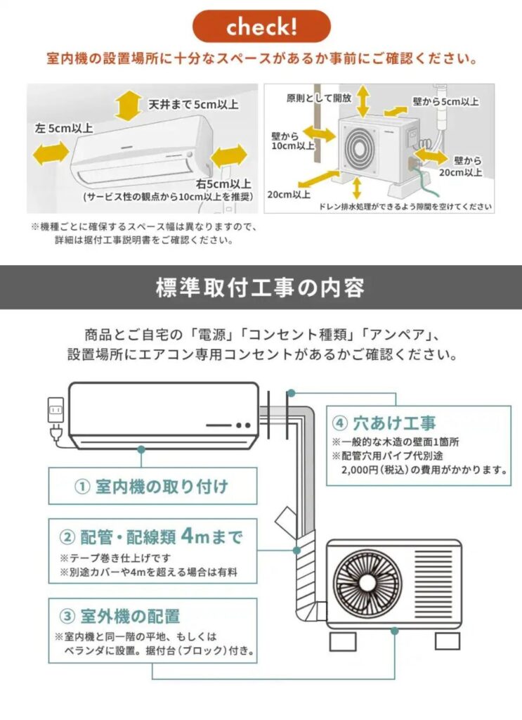 - エアコン取付にはお客様の立ち会いが必要です。