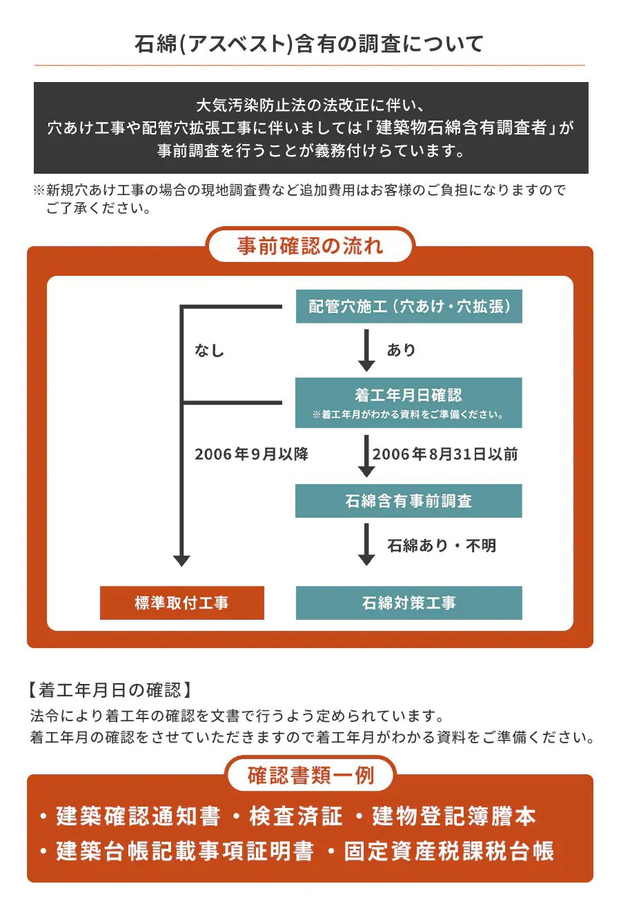 | 石綿事前調査費用 | /1カ所 | ¥4,070~ |